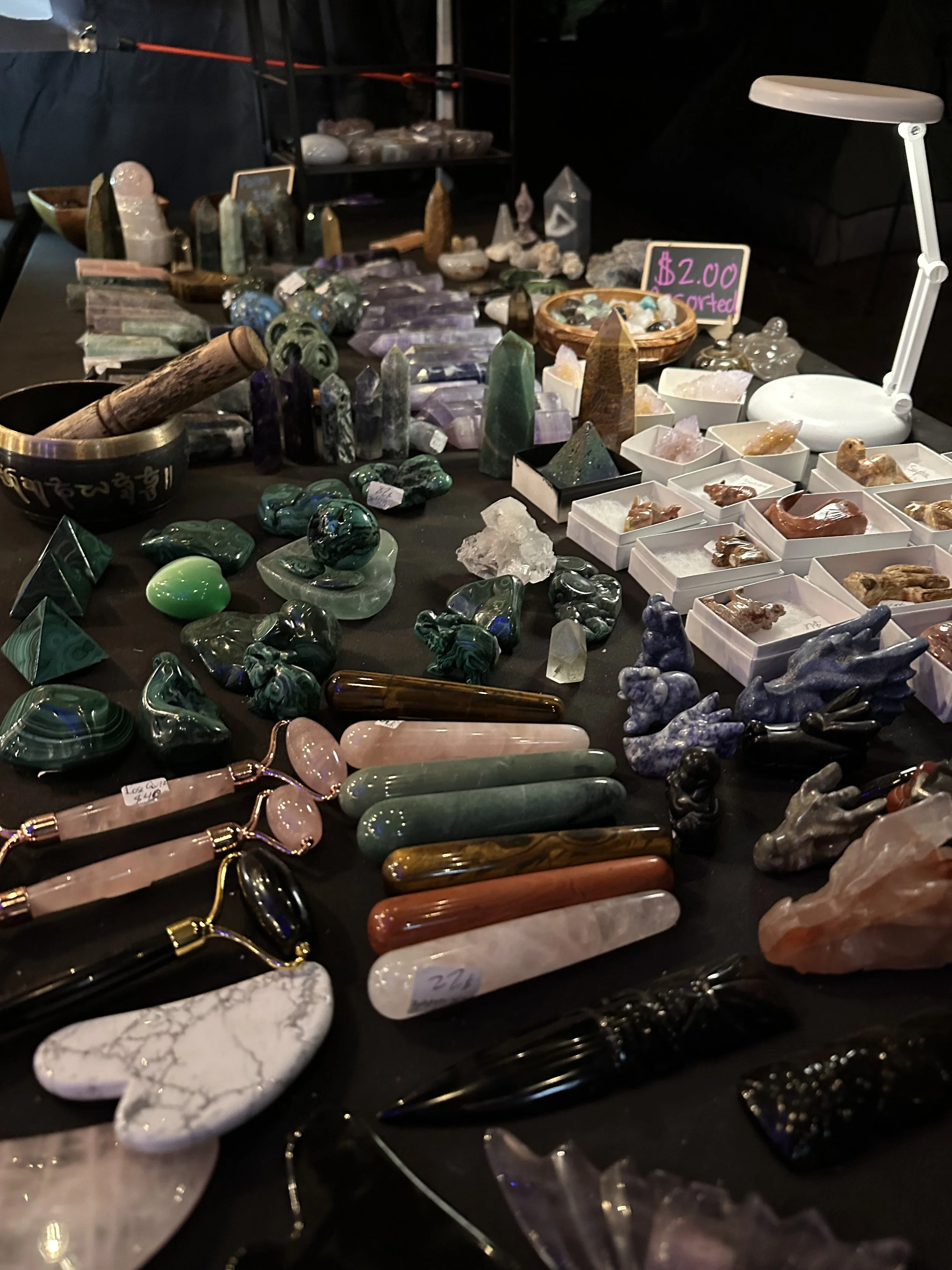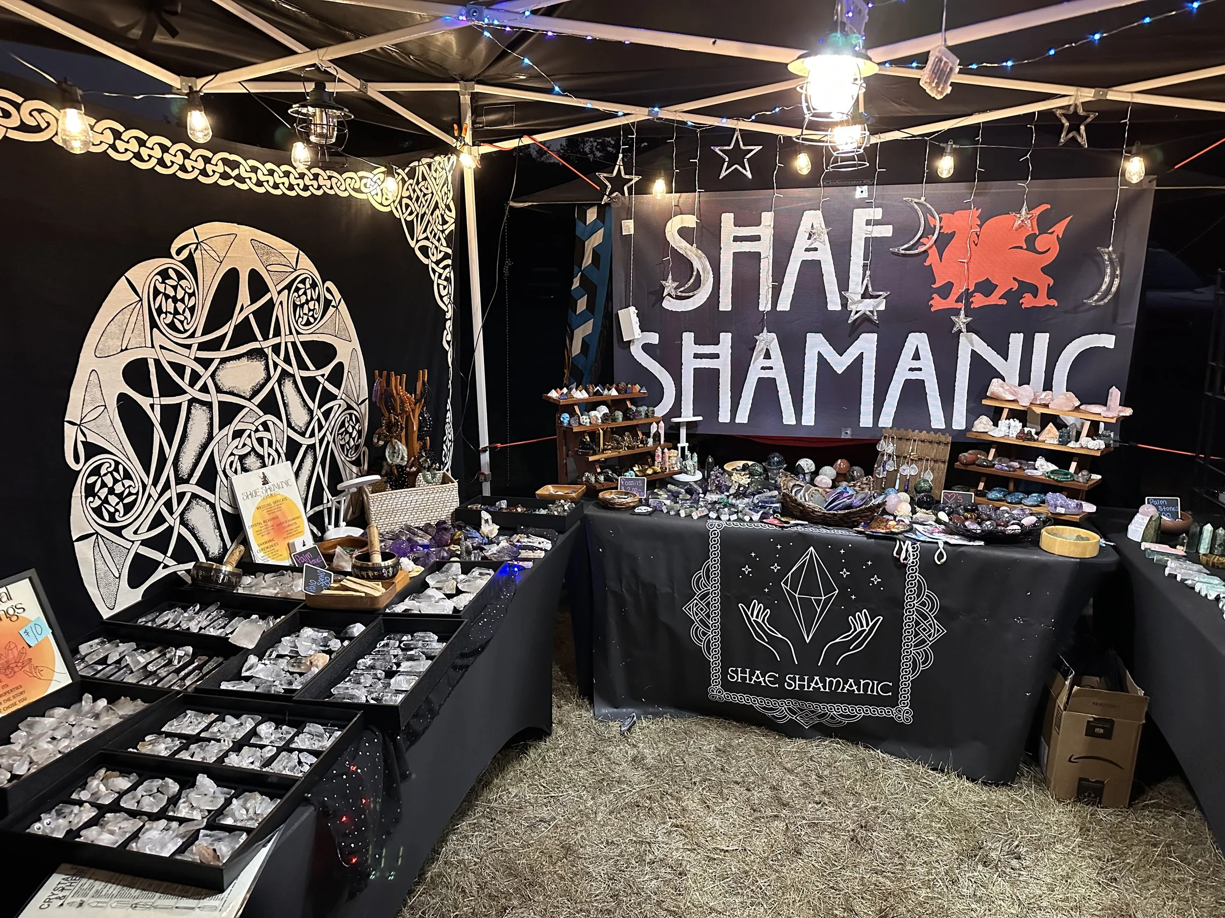 Shae Shamanic is a crystal reader and vendor. A crystal reading is where you choose a crystal from a selection of natural Arkansas clear quartz and Shae explains the energetic qualities of the crystals physical form. This often tells a personal story. These readings also reveal the ways the crystal can work with you and why it chose you to work with. They are usually 10-15 minutes long and you get to go home with your crystal! Shae Shamanic also offers minerals from all over the world as carvings, alter pieces and stones for working with spirit. The main focus being on our own magical Arkansas clear quartz.