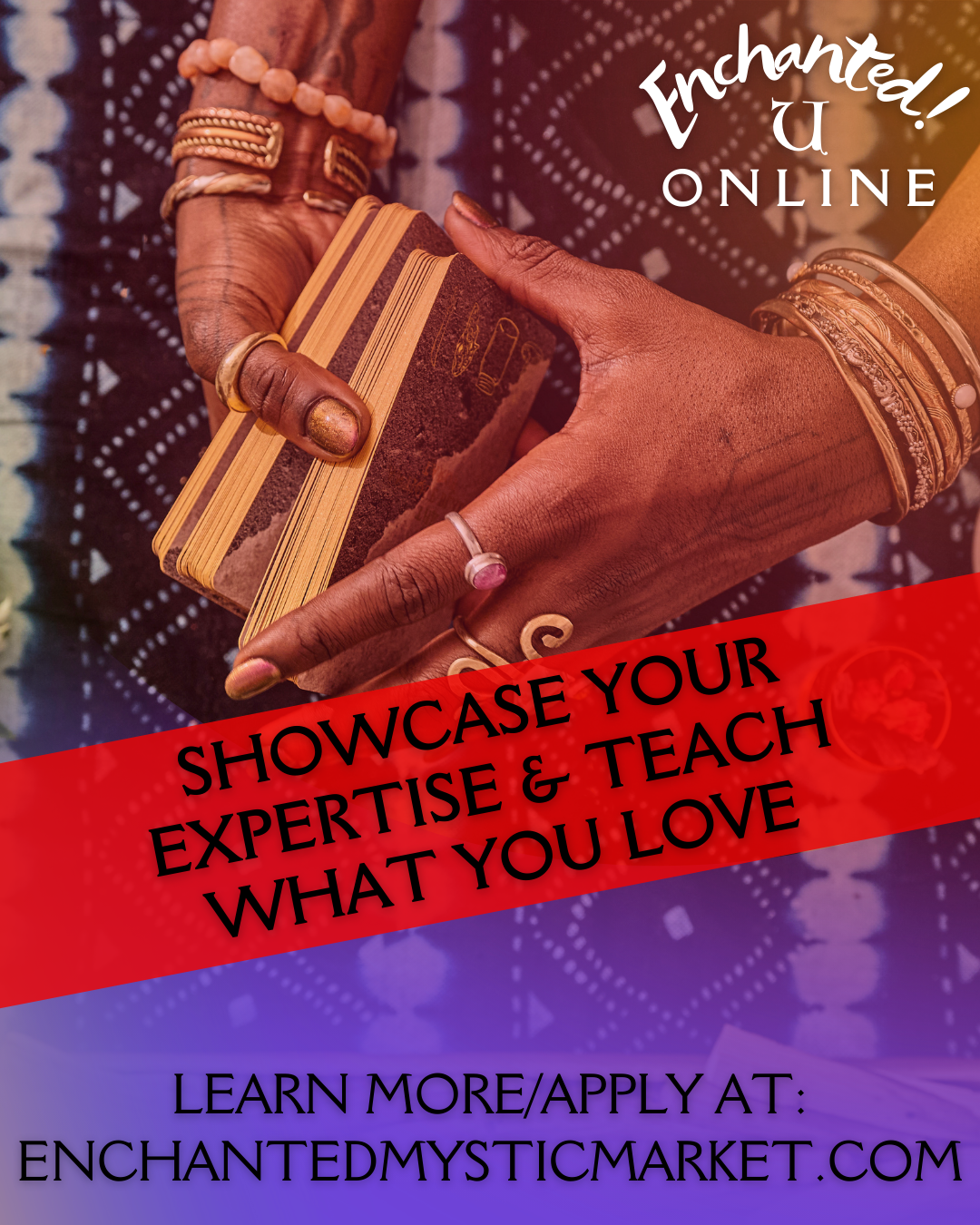 Enchanted! U is calling in visionary creators who are ready to share their craft, their knowledge, and their magic with a thriving, supportive community. As an Enchanted! Creator, you’re not just teaching - you’re co-creating a new era of mystical and intuitive education.